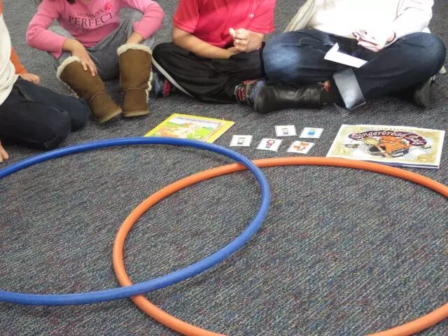 孩子通常在5,6岁时,开始接触这个维恩图。老师也不会一上来就画图,然后开始讲讲讲;而是,先退一步,用更生动形象的实物来进行。比如,在对比两本姜人故事时,就把书,呼啦圈,一起搬出来。用孩子所熟悉的物件,一点点引出这种有同又有异的逻辑关系。
