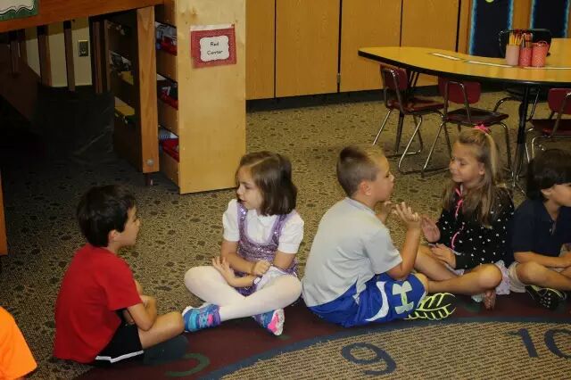 孩子们,膝对膝,面对面,叽叽喳喳开始说。每个人都有机会,表达自己的想法;每个人也都有机会,去听别人说。