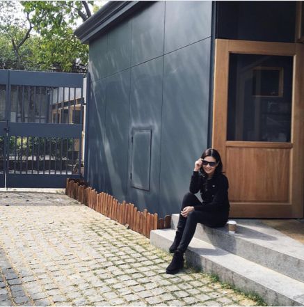 40岁时的生日在上海度过。照片背景是上海著名设计酒店“水舍”,复古朴素的外墙,与上海海派现代气质,形成呼应。她在Ins留言:我没老呢,只是有点怀旧。