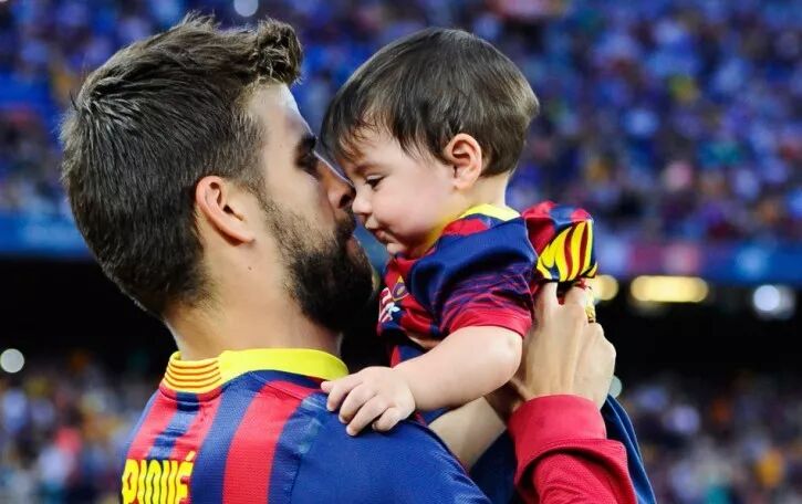 西班牙球员皮克与儿子米兰
